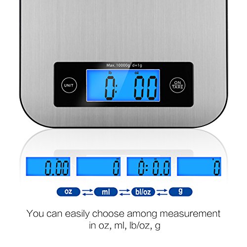Multifunctional Instantly Converts---Food scale to accurately weigh all ingredients,tare function,by switching modes to measure in g/lb:oz/oz/ml.