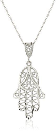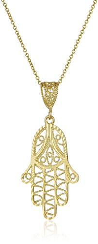 -. Title : 14k Yellow Gold or White Gold Diamond-Cut Hamsa Pendant Necklace, 18"
