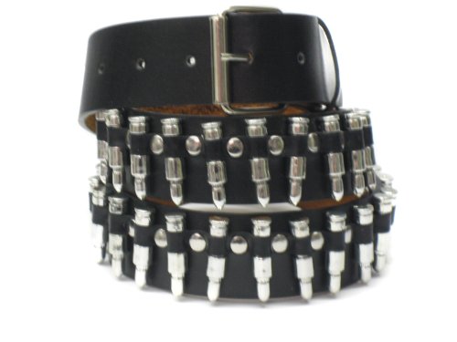 -. Title : Large 38in - 40in Chrome Silver Bullet Genuine Leather Belt