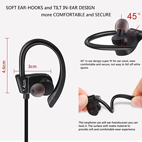 -. Feature : LOUND AND CLEAR SOUND:10mm large Biological Diaphragm speaker combined with Bluetooth 4.1 technology provide louder and clearly sound / CVC 6.0 NOISE REDUCTION:CVC 6.0 Noise Reduction Tech filters external noise,capture clearer microphone voice / COMFORTABLE:We contacted the German designer, study the outline of human ears to meet Ergonomic and used the soft silicone earhooks to ensure our headphones wear comfortably. / SECURE:We provide 3 pairs different size earbuds(S/M/L) to meet different people wear requirements.the tilt of the in-ear design would closer to the ears to prevent falling off from ears,more comfortable and secure,great use our headphones at the gym,running,sports. / 1 YEAR WARRANTY:56S headphones with a 1-Year Manufacturer's Warranty and a 30-day return policy. Buy our headphones worry free today.and you also get 1*Wireless Stereo headset,1*User Manual,1*USB charging cable,3 set*silicon earbuds(S/M/L different size)
