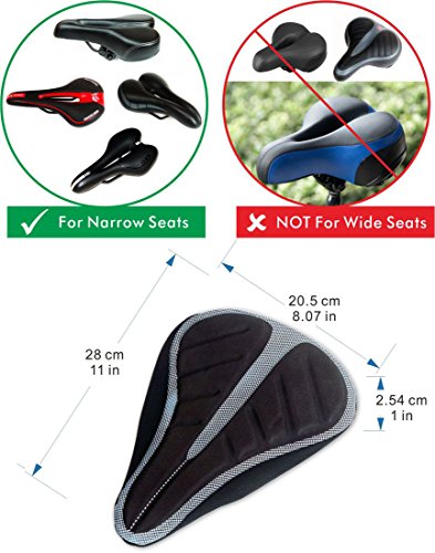 Winningo - Bike Accessories - Enjoy the Ride of Your Life Bicycle GEL Saddle Cushion For Narrow Seats 28x20.5x2.5cm 11x8.07x1in About Winningo Welcome to Winningo, your one stop destination for the best sports and outdoor accessories. We have been working to provide the best sports and outdoor accessories to help our customers to enjoy the fun of riding, running, camping, traveling or more. Winningo tests all of our products carefully and make sure only the best products reach our customers. Your satisfaction is our number 1 priority so do not hesitate to contact us any time you want.Feature