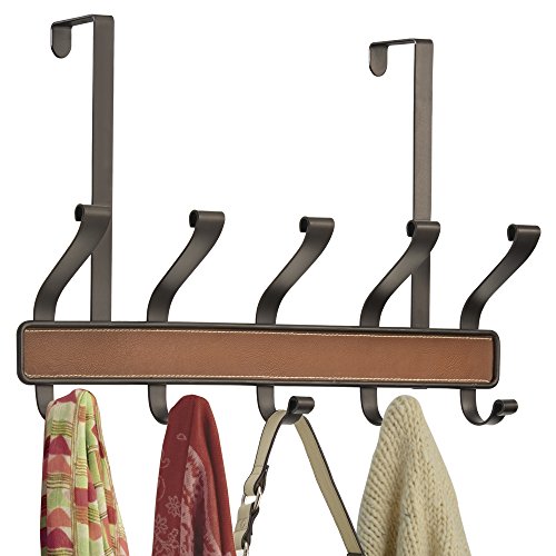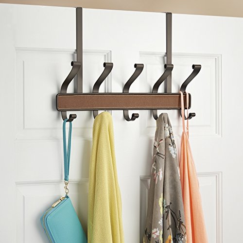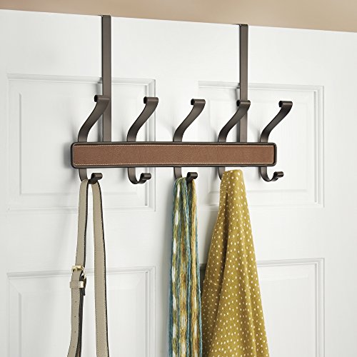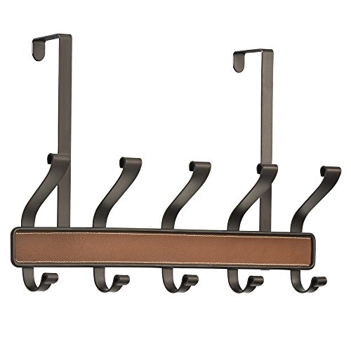 InterDesign Laredo Over Door Storage Rack – Organizer Hooks for Coats, Hats, Robes, Clothes or Towels – 5 Dual Hooks, Brown/Bronze