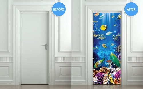 -. Title : Door Wall Fridge LAMINATED STICKER Underwater, Ocean, Sea mural decole film self-adhesive poster 30x79"(77x200 cm)
