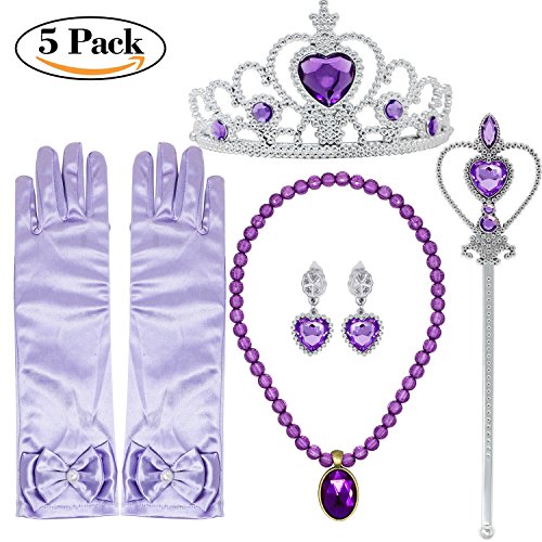 ★Princess Dress up Accessories Set Includes: a Pair(2) of Gloves, Tiara/Crown, Scepter, Necklace and a Pair of Earrings. Recommended ages for the gloves: 3-8 years old.