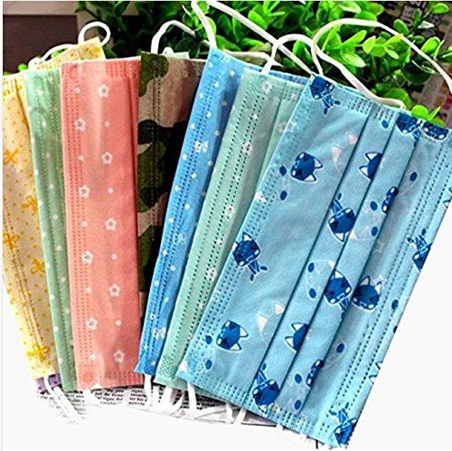 -. Feature : These ear loop face mask is fluid resistant, pleated, for extra comfort. / The mask is used as a surgeons covering for the face that serves as a protective barrier. / Feature:3 layers dust filter mouth mover ,good quality ,cute design. / Made of high quality non-woven fabric.Safe and healthy. / Ideal for dust, germs, allergies, smoke, pollution, ash, pollen, crafts, travel, anonymity.