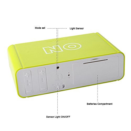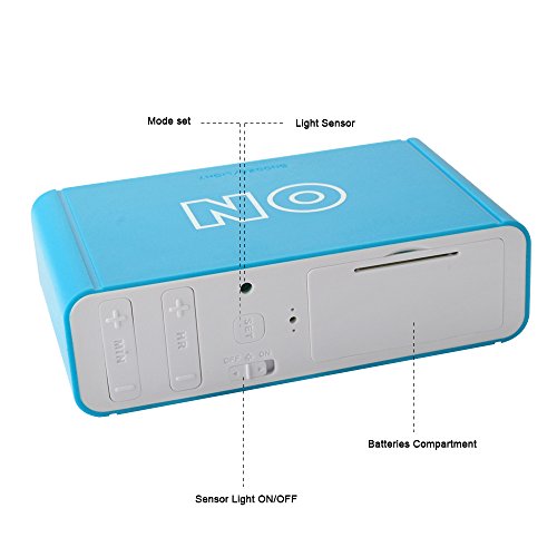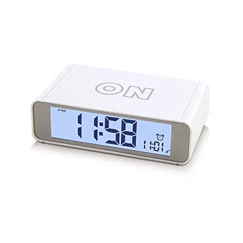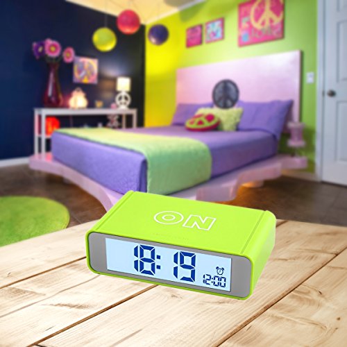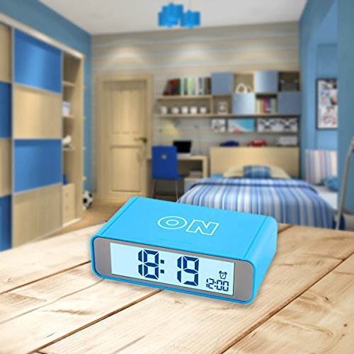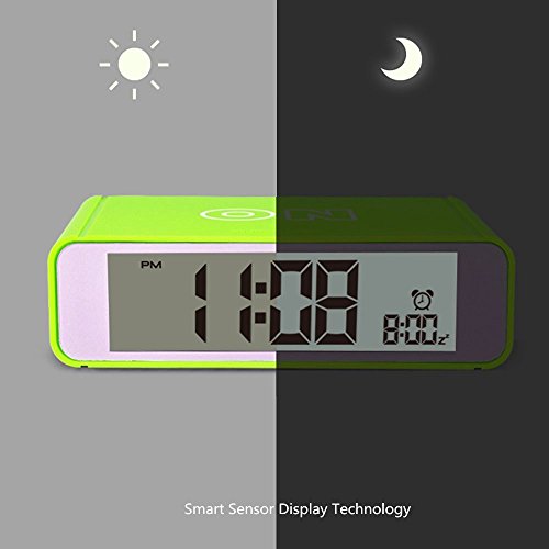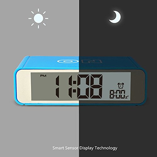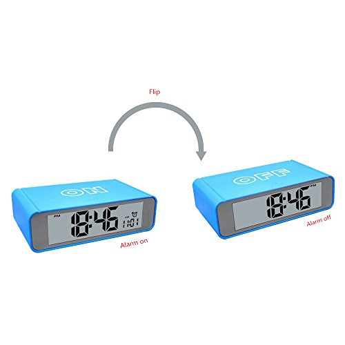 -. Feature : COMPACT SIZE,MODERN DESIGN-It is compact size,modern looking and nice texture.It only takes up few space in room or in your lage when you travel.Size 4.7 x 2.8 x 1.4 inch / ALARM ON/OFF BY FLIP-Simply flip the clock to the ON side to turn the alarm on;flip it to the OFF side to turn the alarm off.Easy peasy / LOUD ALARM WITH REPEATING SNOOZE-The alarm sound loud and snooze repeats every 5 minutes with a crescendo sound.Beginning low to high to wake you up in the morning / SENSOR SOFT LIGHT-Turn the sensor on and clock is automatically lightened up in dark so the digits are easy to read but it is not bright that it will affect your sleep.Turn the sensor off if you dont want it / EASY TO USE-Lightweight and portable,easy to use.A nice gift for kids,children,teens and travelers