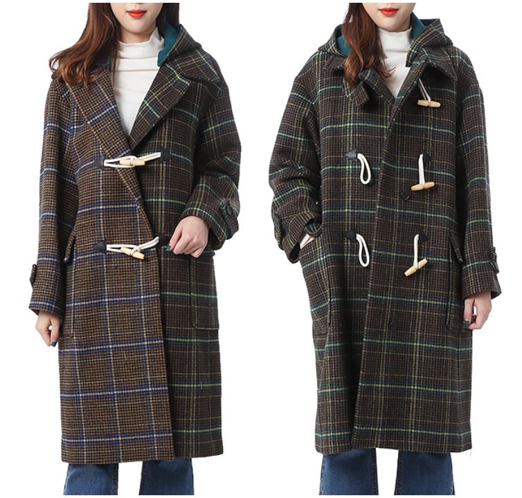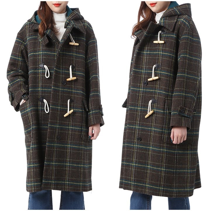 고급스러운 체크 컬러에 아웃 포켓 장식으로 포인트를 준 더플 코트 입니다. 베이직한 포멀함에 캐주얼한 감성을 더한 아이템 입니다.