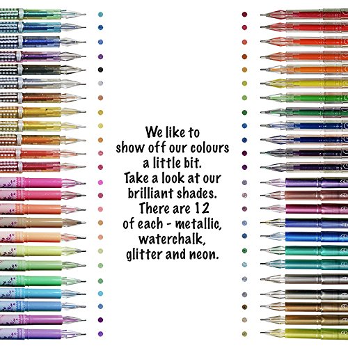 Original Stationery Metallic, Glitter, Neon and WaterChalk Gel Pens with Intricate Detail Nib (Set of 48)