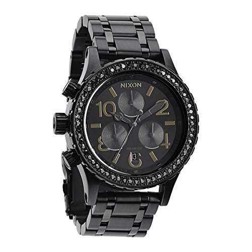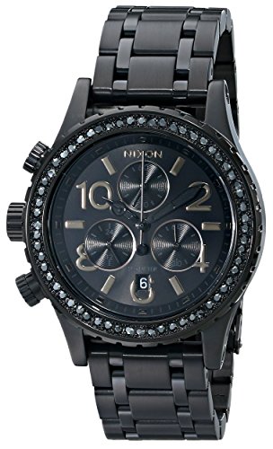 Studio : Nixon Inc. Publisher : Nixon Inc. Binding : Watch Product Description Nixon - 38-20 Chrono - All Black Crystal - More than a muse, The 38-20's contemporary shape and scale shift is now, and her lineage to the family pedigree is clear. Slimmed from a 42mm case to 38mm, The 38-20 hits all the right notes. A special five link bracelet for comfort and a SwarovskiTM crystal flossed bezel makes it distinctly Nixon, expressive and especially for her. Movement: Miyota Japanese quartz 6 hand chronograph with a 24hr subdial and date placement at 6 hour. Case: 38mm, 200 meter/20 ATM custom solid stainless steel case, fixed stainless steel bezel with inlaid Swarovski crystals, hardened mineral crystal, triple gasket stainless steel screw down crown, double gasket stainless steel screw down pushers, stainless steel screw down caseback and screw pin lugs. Band: 19mm custom solid stainless steel 5 link bracelet and solid stainless steel double locking clasp with micro adjust. 0