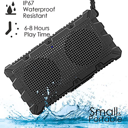 【IP67 Fully Waterproof 】 IP6 means dust proof speaker,IPX7 means waterproof speaker can floating or submerged in the water up to 3 feet for 30 minutes.Perfect as a shower speaker, pool speaker, beach speaker etc,no worry about falling into the water. (Notice: Please tight the plug cover on the speaker before contacting water and remember to dry it soon after use for longer lifespan.)