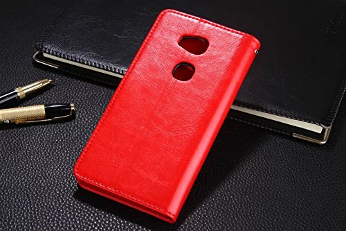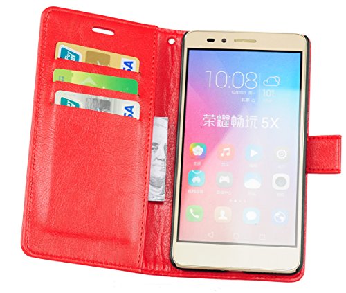 Honor 5X Case, Ultra Slim Stand Flip Wallet Case with Built-in Card Slots, APLUS ® Premium PU Leather Wallet Cover Case for Huawei Honor 5X Smartphone (Red)
