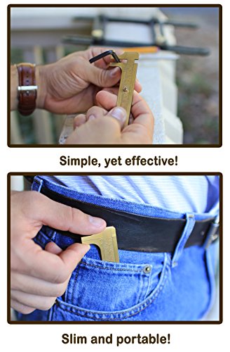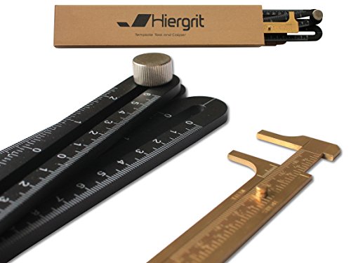 - SOLD BY HIERGRIT, FULFILLED BY AMAZON. Here's the deal: 2 metal tools. A highly versatile aluminum template tool good for layouts in tile, stone, brick, wood, and much more. A slim brass caliper great for those small random measurements. Both durable, both effective.