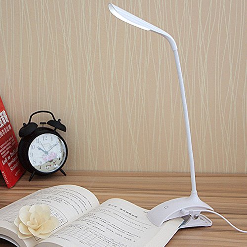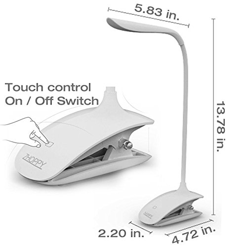 Product information Color:White u0026nbsp;Item Weight 4.5 ounces Product Dimensions 6.3 x 2.2 x 13.8 inches Origin Imported Item model number DL-002-WH Batteries 1 Lithium ion batteries required. (included) Assembled Height 13.78 inches Assembled Length 6.3 inches Assembled Width 2.2 inches Base Diameter 6.3 inches Style Modern Color White Blade Color White Material Plastic Finish Painted Included Components Batteries included Voltage 5 volts Specific Uses Reading Fixture Features Dimmable, Instant On, Shock and vibration resistant, Touch Switch, Portable Shade Color White Shade Material Plastic Light Direction Adjustable Plug Format USB Power Source corded-electric / battery-powered Switch Style Touch Button Batteries Included? Yes Batteries Required? No Type of Bulb LED Luminous Flux 120 lm Wattage 2.5 watts Wattage 2.5 watts Incandescent equivalent 8 watts Bulb Features Dimmable Color Temperature 6000 Kelvin Average Life 30000 hours