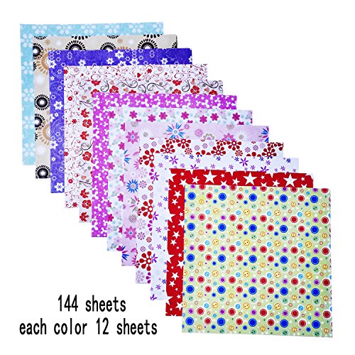 -. Feature : Washi folding paper: package includes 144 sheets DIY origami papers and its size is approx. 6 x 6 inches/ 15 x 15 cm; One side with cute pattern and the other side is white / 12 Different patterns: these craft folding paper with vivid colors, are of 12 diversified beautiful patterns, 12 pieces each pattern, meeting your various craft needs / A good gift: the origami papers is a good gift for anyone who enjoys doing this wonderful art form; Fit for beginners or experienced people to practice the art of paper folding / Fun and pleasure: folding these square washi folding papers into the shape you want, provide you the fun and pleasure of creating; Can share your creations with friends and loved ones / Wide application: suitable for a number of different paper folding and craft projects, such as making traditional origami shapes, decoupage projects, scrapbooks and so on