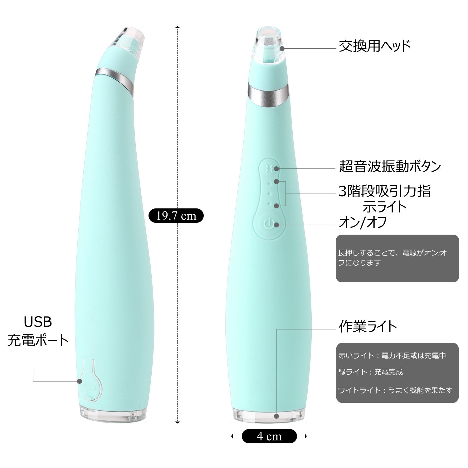 : Vacuum suction power • Ultrasonic peeling, clear horn plug, drop old horn, heap skin elasticity