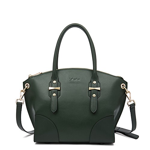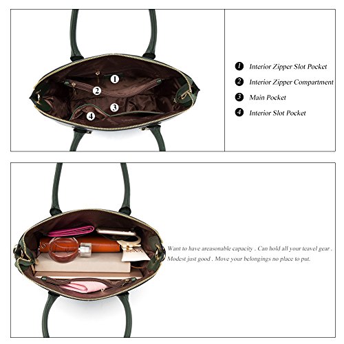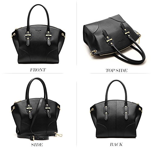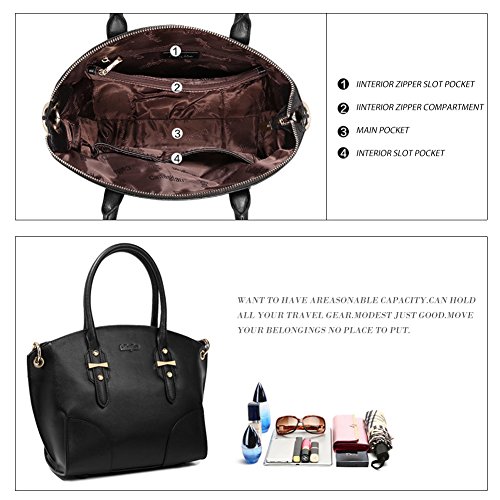 -. Feature : [MAIN MATERIAL]: Outer material is Cowhide Split Leather + Synthetic Leather, and lining material is polyester. The material of shoulder strap and handle is Synthetic Leather. / [ROOMY STRUCTURE]: 1 Main Pocket + 1 Interior Zipper Compartment + 1 Interior Slot Pocket + 2 Interior Slot Pockets. Multi-pockets are apt to store long wallets, cell phones, triple folding umbrellas and some other tiny daily gadgets. / [HARDWARE & LINING &CLOSURE]: Classic pale gold hardware, the lining material is fabric. Zippered opening closure. / [DIMENSIOINS & WEIGHTS]: (L) 14.17 x (W) 5.31 x (H) 10.04 inches, 1.79 Pounds, that is to say, this is a handbag easily carried. / [GUARANTEE]: If this item doesn't meet your expectations, please do not hesitate to inform us, and our service team will provide best solution. For quality problems or defective items, there are full refunds or free replacement you can choose.