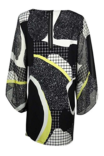 Product DescriptionBlouse features printed jersey fabric, 3/4 chiffon sleeves, scoop neck and pullover style.0