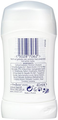 -. Binding : Health and Beauty -. Brand : Dove -. EAN : 0721867465473 -. Feature : Dove Invisible Dry Anti-Perspirant Deodorant Stick 40ml (PACK OF 6) / Dove / 40ml (x6) / Quantity: 6 -. IsAdultProduct : 0 -. Label : Dove -. LegalDisclaimer : Please be aware that unless expressly indicated otherwise, product packaging may vary from what is shown on this listing. We recommend that you do not rely solely on the information presented on our listing. Please always read the labels, warning and directions provided before using or consuming the product. -. Manufacturer : Dove -. MPN : PACK6-OC37187011 -. PackageQuantity : 6 -. PartNumber : PACK6-OC37187011 -. ProductGroup : Beauty -. ProductTypeName : BEAUTY -. Publisher : Dove -. Studio : Dove -. Title : Dove Invisible Dry Anti-Perspirant Deodorant Stick 40ml (PACK OF 6) -. UPC : 721867465473