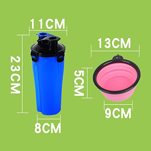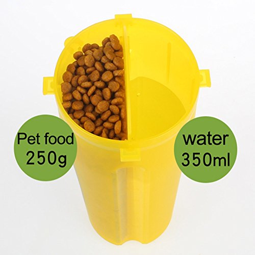 Homedeco Portable Pet Bottle Feeder Dog Food Water Cup dual Purpose Container Outdoor Drinking Feeder Dog Supplies - Dual-Chamer Design: One bottle, two chambers. Easily feed or hydrate your dogs/cats/small animals with fresh water/pet food