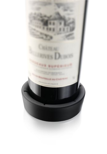-. Feature : Wine Bottle Coaster by Vacu Vin / Catches the drips from your bottle that occurs during pouring / Coaster stays with the bottle, gently adhering with soft silicone grips / The coaster prevents scratches and marks to furniture / Fits most standard 750 ml wine bottles