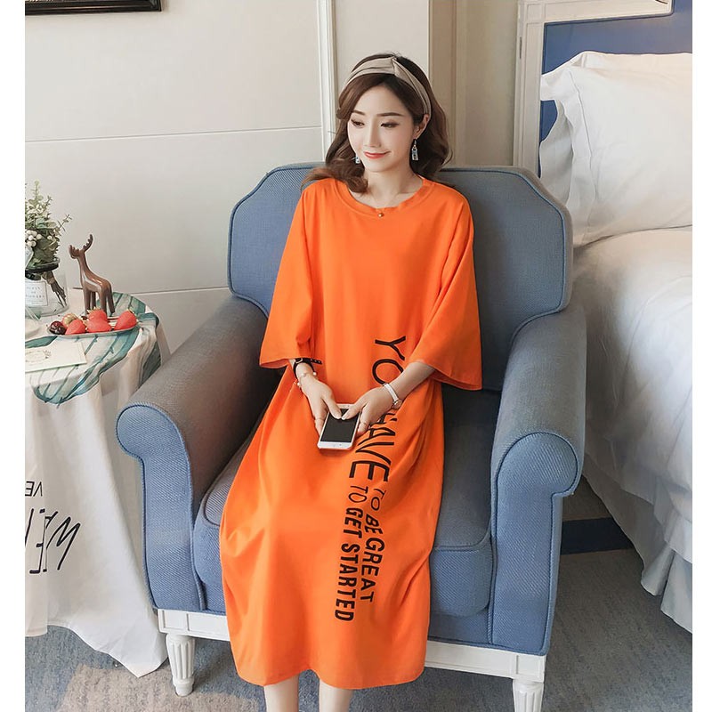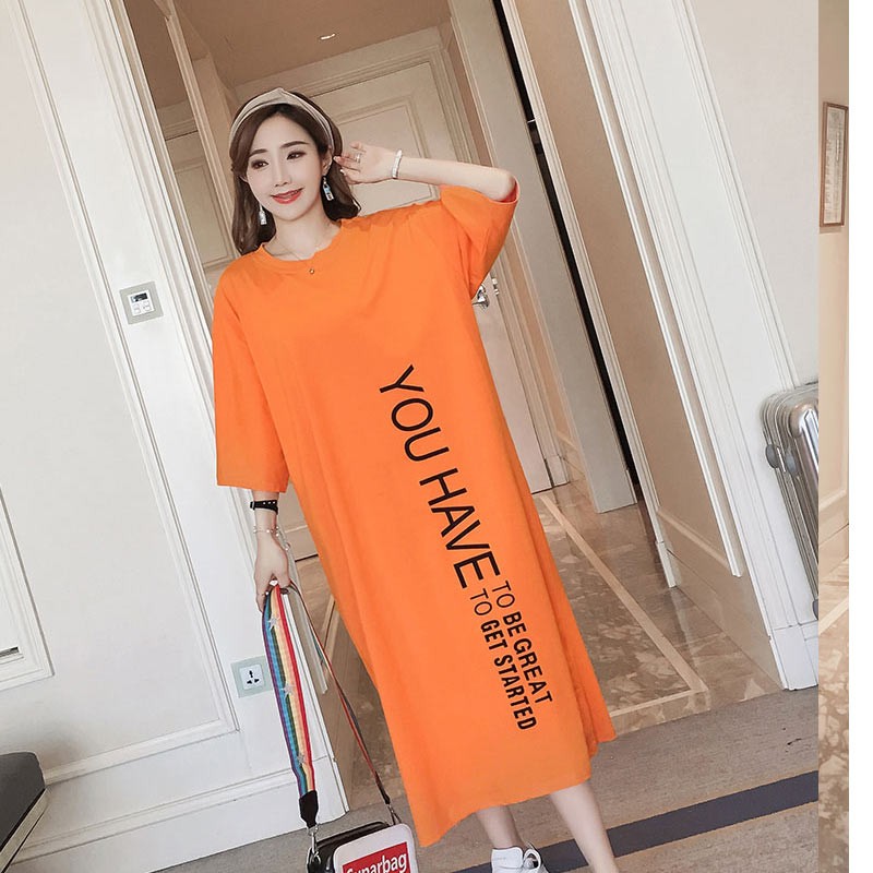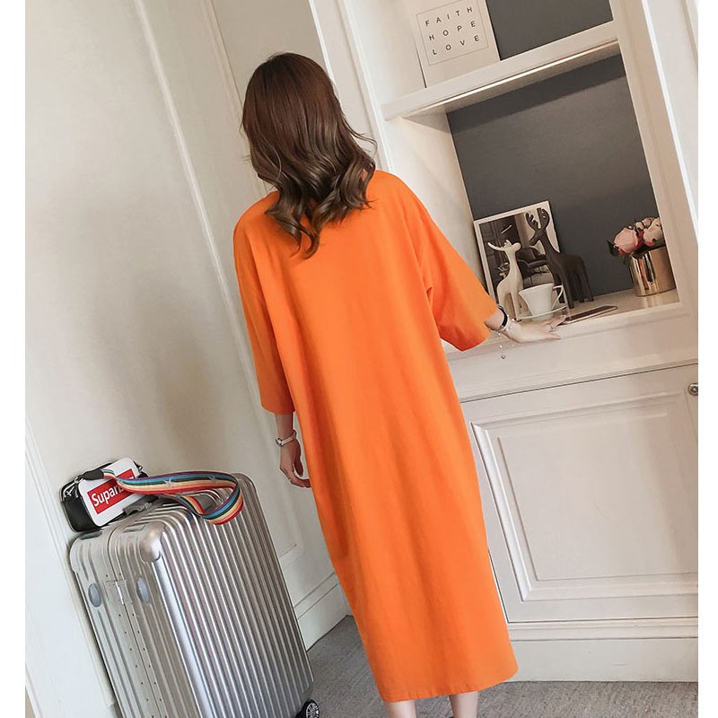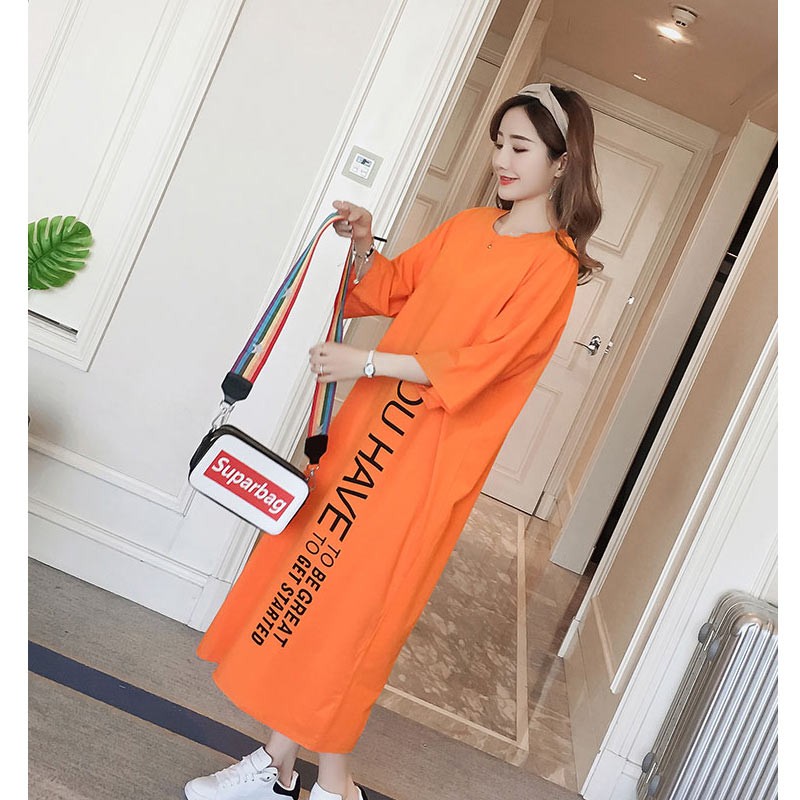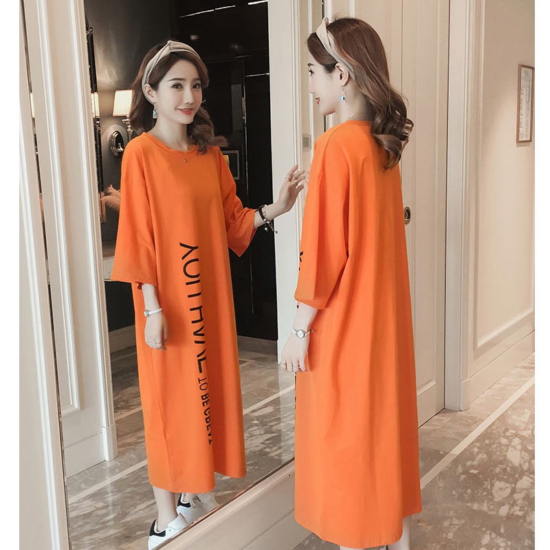 ラウンドネック・5分袖・ロング丈のルーズシルエットのTワンピース♪