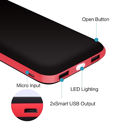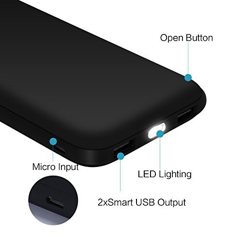 -. Feature : 10,000mAh capacity with dual USB outputs which quickly and effectively help conquer low power emergency. / Portable power bank, unparalleled comfort grip, designed with high quality shell, delivering elegant and outstanding temperament. / Portable battery charger can be used as Samsung Galaxy S6 charger, Samsung Galaxy S5 portable charger, iPhone 6+ portable charger, iPhone 6 charger, iPhone 5 charger, iPad charger,and much more. / Fast charge output (5V / 3.1A total) through dual USB ports (5V / 2.1A and 5V / 1A) allow for long flights, road trips, or whenever you need to charge your iPhone, iPad, and other mobile devices. / Package Contents: 10000mAh Power Bank, Micro USB Cable, 12 Month Warranty.