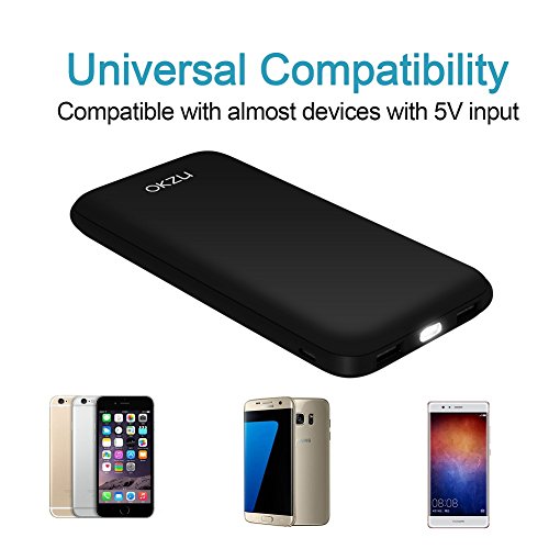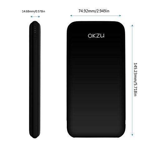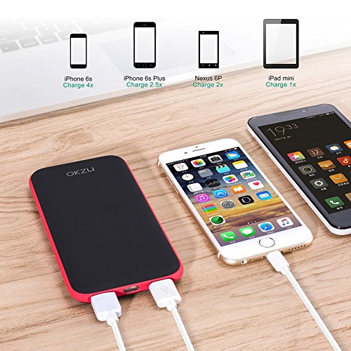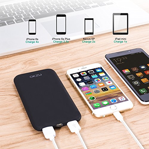 -. Title : OKZU 10000mah Power Bank, Slim Dual USB External Battery, Portable Charger Backup Pack for iPhone iPad Samsung and more