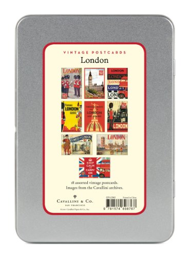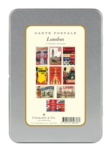 -. Title : Cavallini London Carte Postale, 18 Postcards per Tin