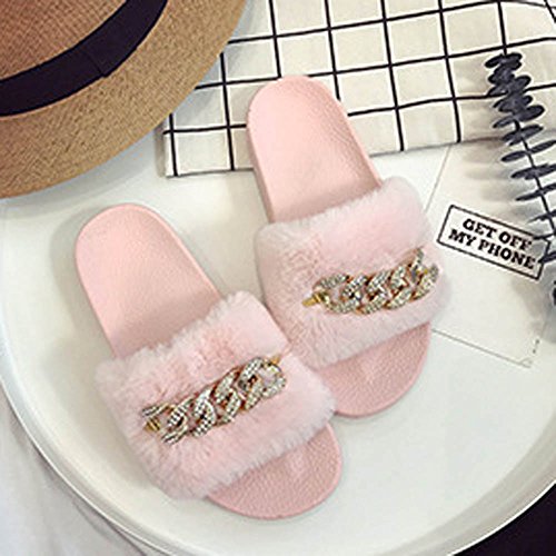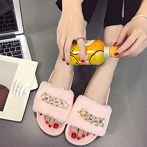 2. Fluffy Rabbit Fur Slipper casual shoes,full of elastic for Easy to wear Take off!