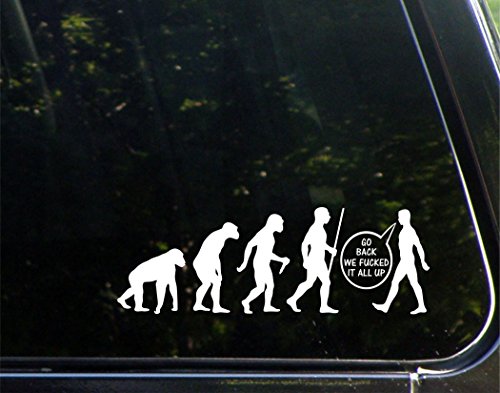 -. Title : Go Back We F*cked It All Up EVOLUTION LINE - 8-3/4" x 3-1/2" - Vinyl Die Cut Decal/ Bumper Sticker For Windows, Cars, Trucks, Laptops, Etc.