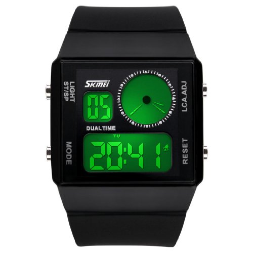 -. Title : Fanmis Leisure Stylish Square Dial Waterproof LED Digital Unisex Black Rubber Strap Sport Wrist Watch