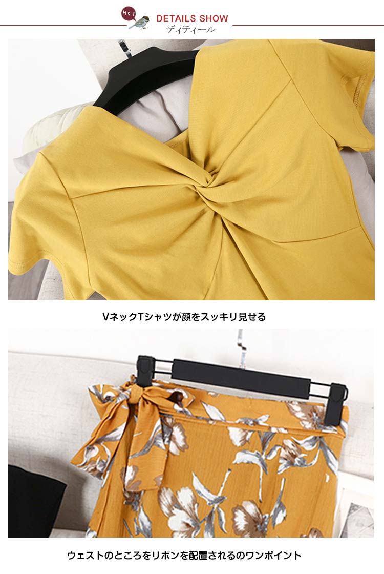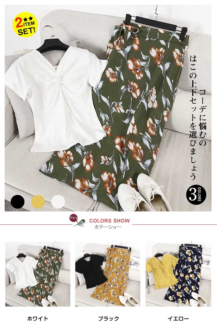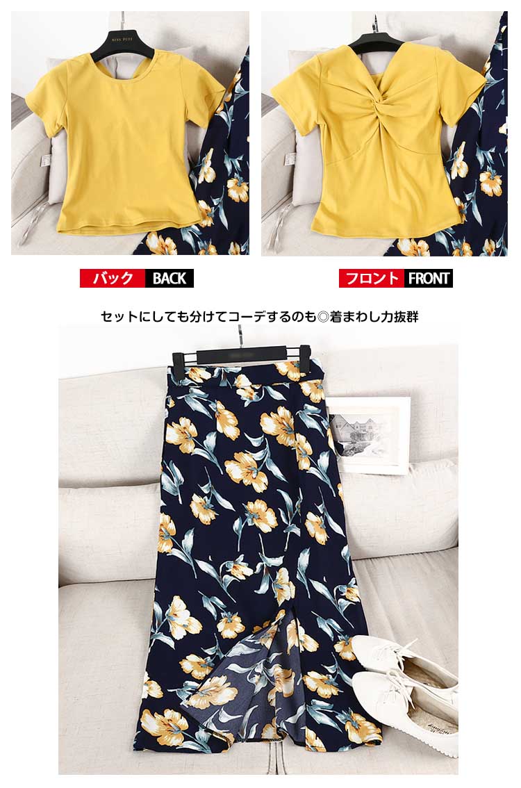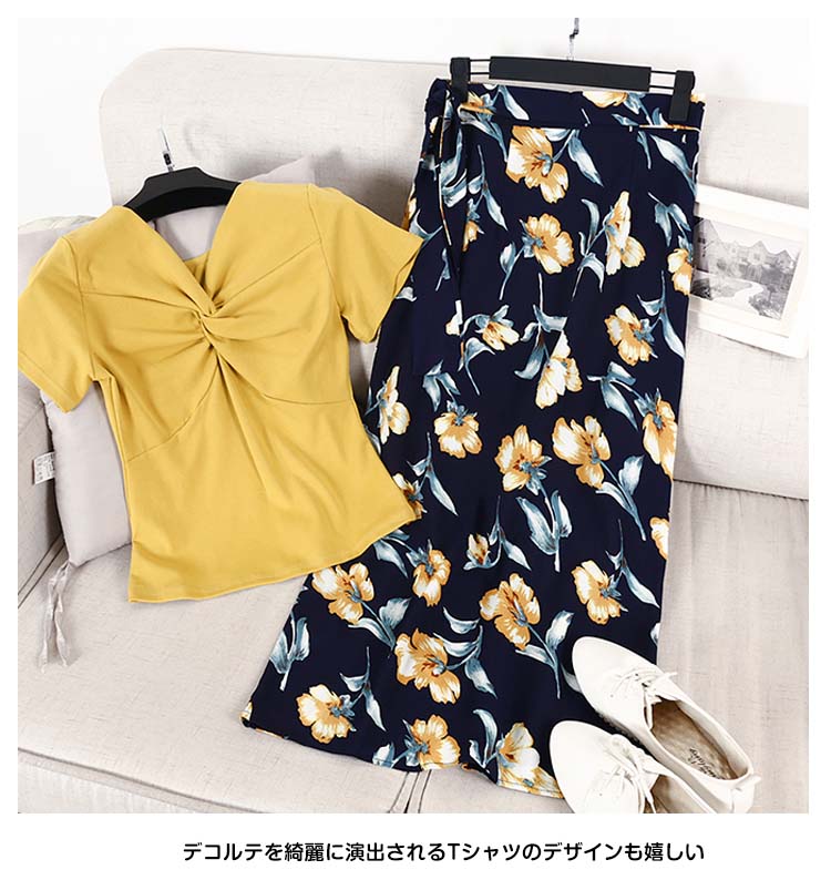 | コーデに悩むのはこの上下セットを選びましょうデートや旅行など時、コーデに迷う方はスカートセットお勧めデコルテを綺麗に演出されるTシャツのデザインも嬉しいセットにしても分けてコーデするのも◎着まわし力抜群 | |