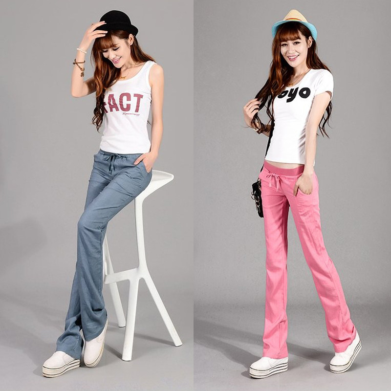 今日团购: 2015春夏新款显瘦修身棉麻休闲裤 女长裤 松紧腰亚麻女裤 薄款 潮
