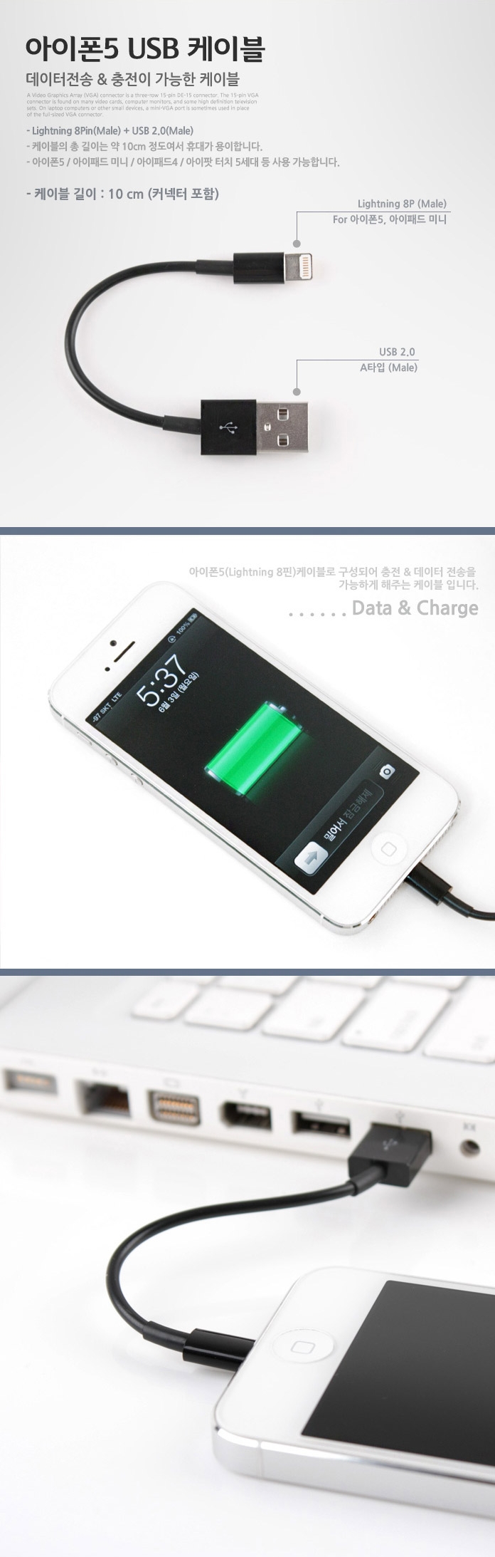 Apple iPhone 5 Lightning 8-pin USB cable 10CM