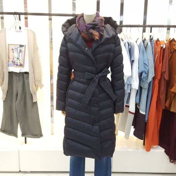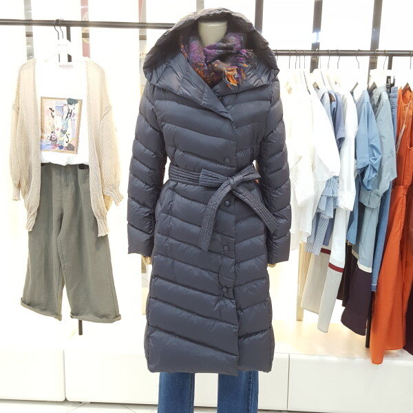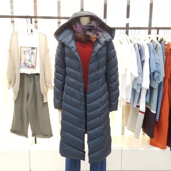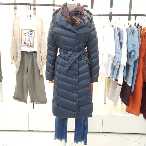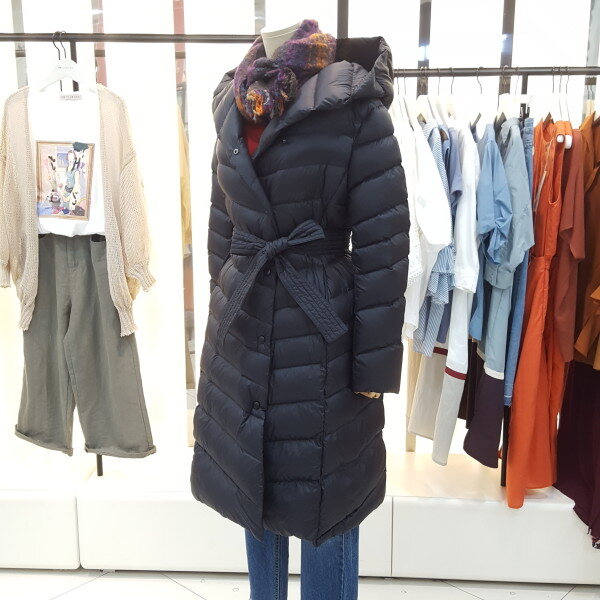 후드 다운 경량 롱 패딩입니다.오리 솜털,깃털 충전재로 가볍고 무릎까지 오는 길이감에 후드가 있어 보온성이 좋습니다.탈부착 가능한 허리끈으로 라인을 잡아주어 슬림한 뒷라인을 연출하실 수 있습니다.