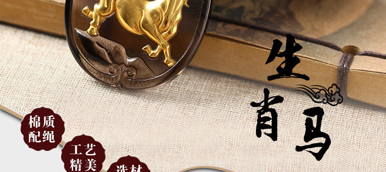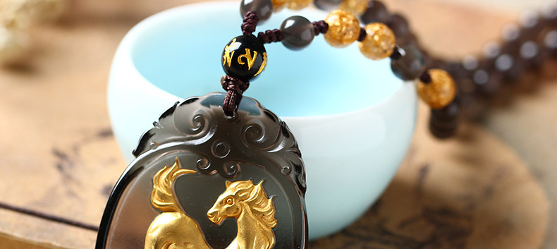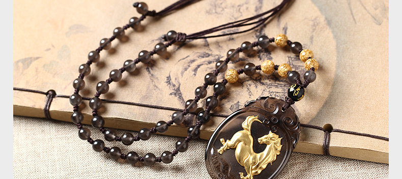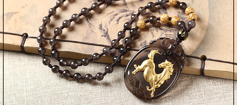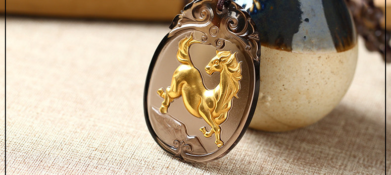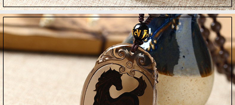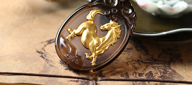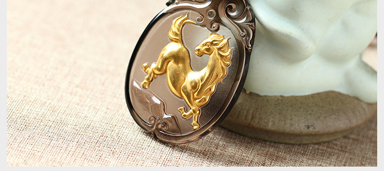 开光天然冰种镀金黑曜石神骏登峰吊坠生肖马吉祥物