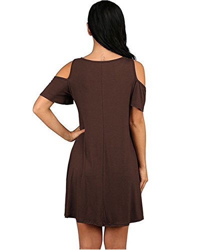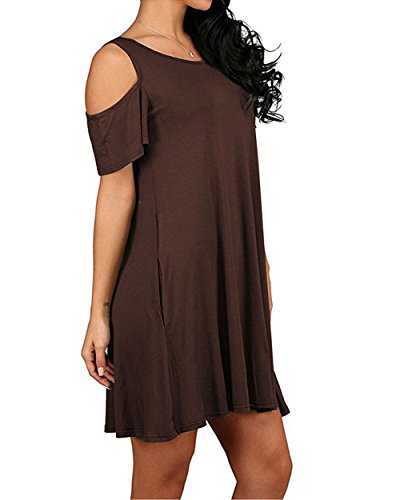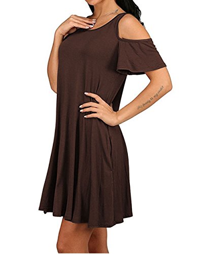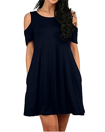 Women's Summer Swing T-Shirt Dress Cold Shoulder Tunic Top Casual Sundresses With Pockets S-2X Plus About Product: Main Material: Cotton