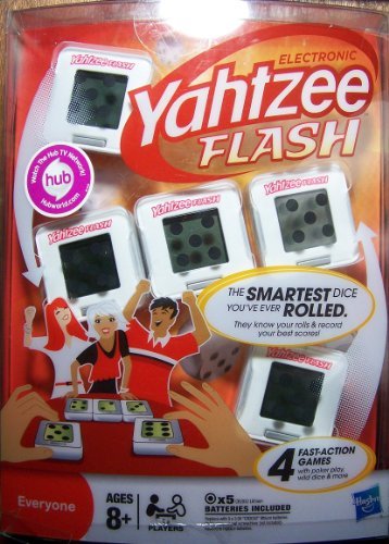 Studio : Hasbro Publisher : Hasbro Binding : Toy Product Description A fun, fast-moving game with a high-tech twist, Electronic YAHTZEE FLASH will amaze you with its "magical mind-reading" ability--drop the dice, line up the numbers you like, and Electronic YAHTZEE FLASH does the rest. These dice keep track of what you rolled, what you decide to hold, and automatically re-roll the rest so you don't have to. Designed for one or more players, this game features the smartest dice you or your friends have ever used for non-stop excitement.