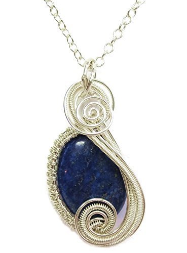 -. Title : Lapis Lazuli & Sterling Silver Wire-Wrapped "Swish" Pendant on Chain