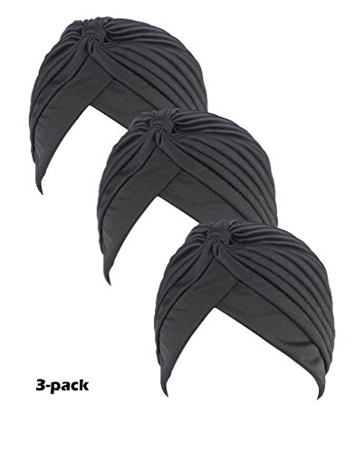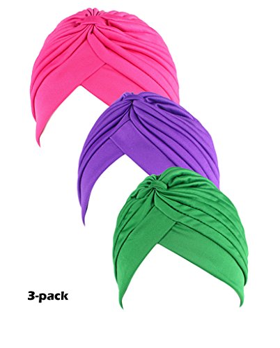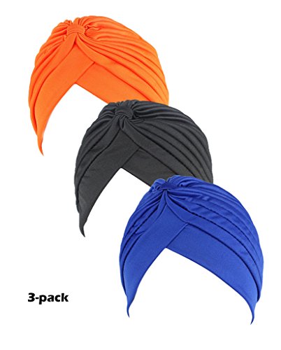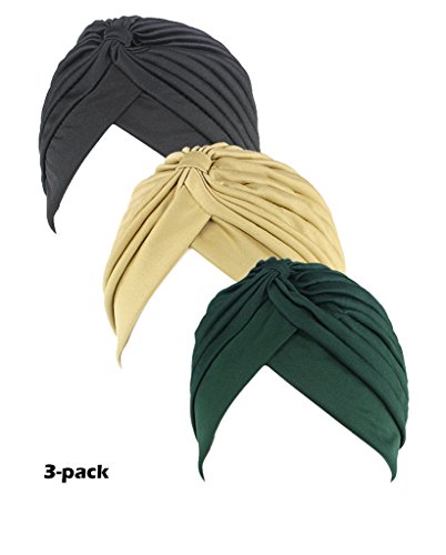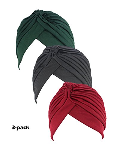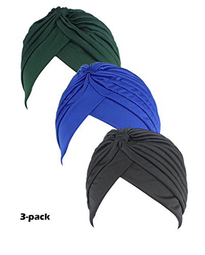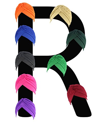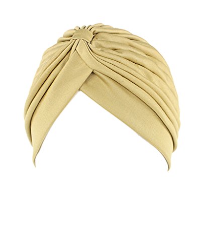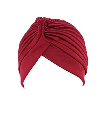 Made from high quality Polyester These turbans are easy to wear and are a comfortable fit. Excellent Hair Covering in Case of Hair Loss or Use it for Sun Cover to Protect Your Hair or for Bad Hair Days. This Turban features a twisted knot design in the center loaded with pleats all around. It's very lightweight, easy to slip on and off and available in one adult size.Keep your hair in place and be stylish too. Soft and classic in head cover gear, Ava Gardner made these turbans famous on the big Hollywood screen decades ago. Today, we wear them for sun cover to protect our hair when sunbathing, for bad hair days (with or without wigs), or during times when medical treatments prevent our hair from looking its best. Free size : stretch elastic,adjustable Very comfortable, soft, stretchy and easy-to-wear Excellent for hair loss, to conceal hair or to protect the head We have a nice selection to match your everyday wardrobe or to wear to an elegant special occasion. 0