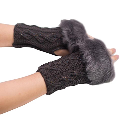 1Pair Women Girl Warm Winter Faux Rabbit Fur Wrist Fingerless Gloves Mittens (NO Retail Box. Packed Safely in Bubble Bag) 0
