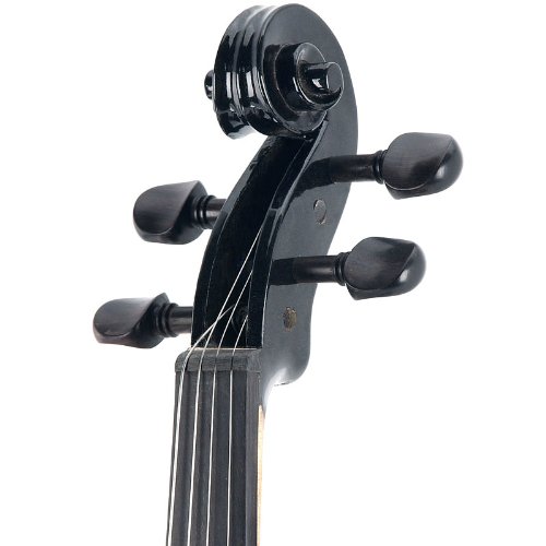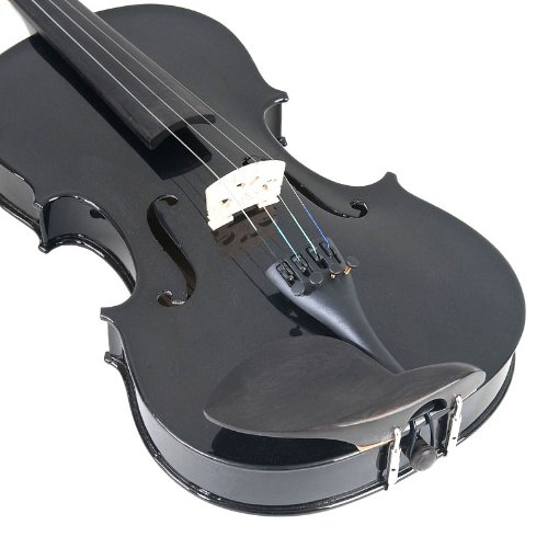 -. Feature : Hand-Carved Solid Spruce Top, Solid Maple Back & Sides / Ebony Fingerboard, Pegs & Chinrest / Alloy tailpiece with 4 built-in fine tuners / Brazilwood bow with ebony frog and unbleached genuine Mongolian horsehair / Full Size Black Violin. Includes Extra Set of Strings, Rosin, Bridge and more