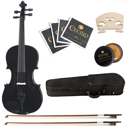 -. Title : Cecilio CVN-Black 4/4 (Full Size) Ebony Fitted Orchestra Black Violin with Hard Case