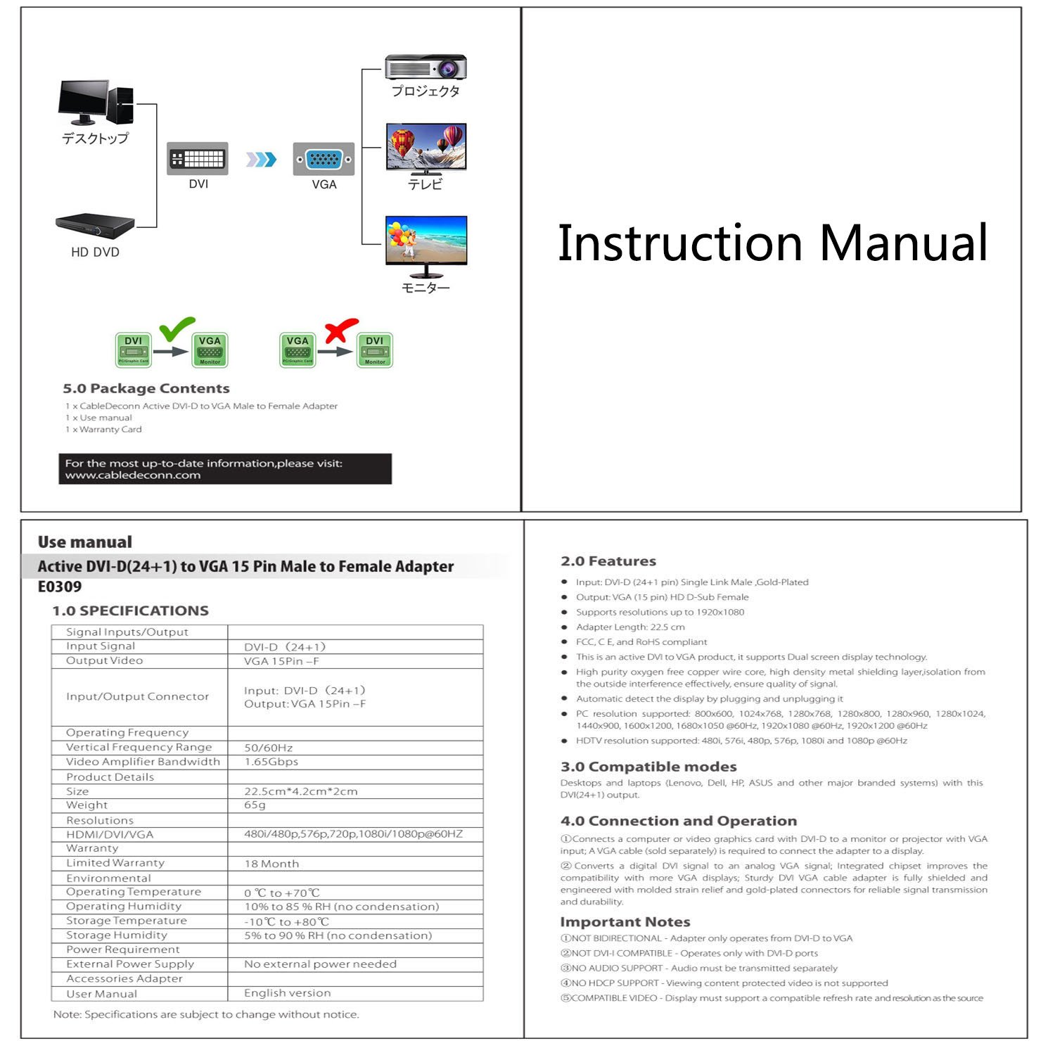 • The DVI to VGA conversion adapter converts the DVI - D 24 + 1 digital signal to the VGA analog signal.