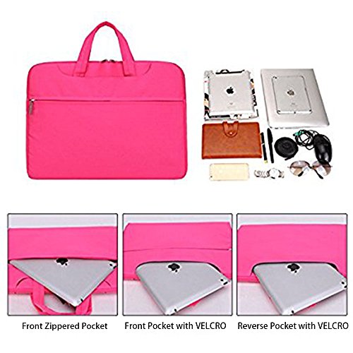 This case features top handles for you to carry your laptop in comfort, and two side pockets for storage of small items like power adapter and notepads. The handles can tuck away in the pockets when you do not need them, giving the case a simpler look.