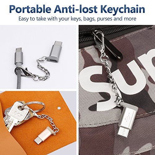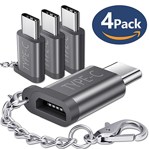 USB Type C Adapter 4 Pack, JS Aluminum USB C to Micro USB Convert Connector with Keychain for Samsung Galaxy S8 New Macbook Pixel XL Nexus 5X 6P LG G5 G6 V20 Nintendo Switch and More(Grey 4 Pack)