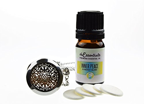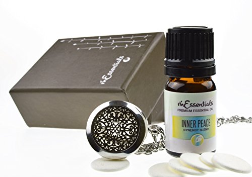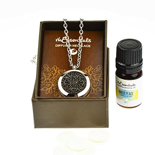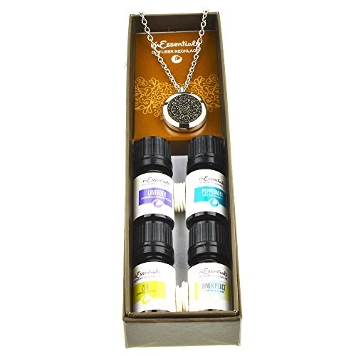 UNIQUE - aromatherapy Essential oils and Diffuser Necklace Gift set for you or to give as a gift. Combines beautifully crafted Diffuser necklace with one 5 ml bottles of 100% pure therapeutic grade essential oils, and 5 refill pads packaged in a finely crafted gift box.