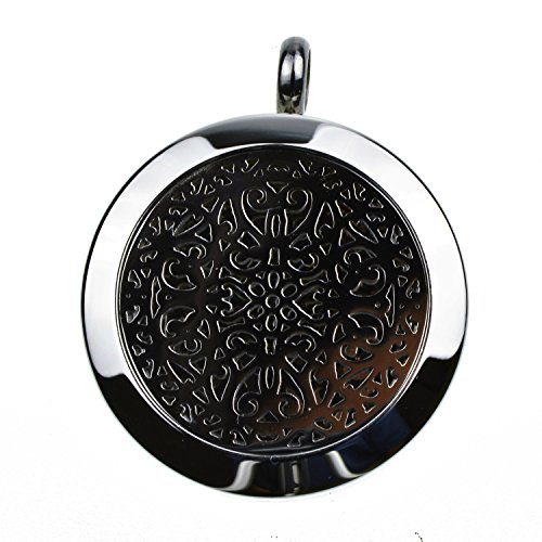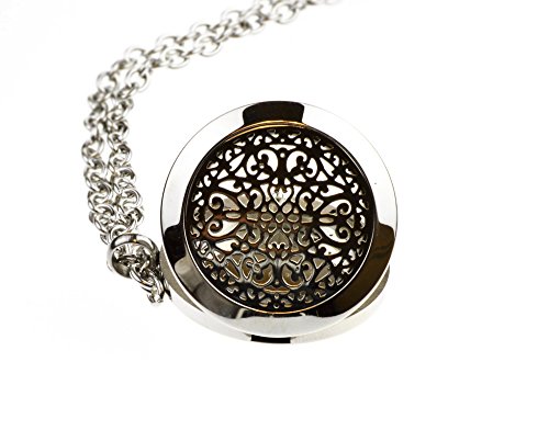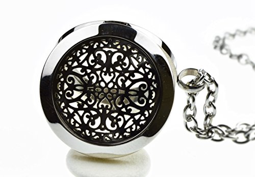 Wrought Iron Essential Oil Diffuser Necklace Stainless Steel Locket Pendant with 24" Chain, oil, and pads in Gift Box