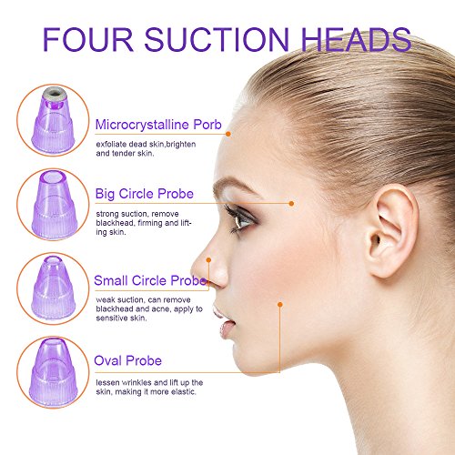 ✅4 REPLACEABLE SUCTION HEADS - There are 4 removable probes come with this blackhead remover device to solve different skin problems.
