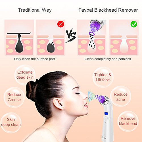 Rechargeable Blackhead Remover Vacuum Suction - Favbal Electric Pore Cleaner Acne Comedone Extractor Kit Exfoliating Machine with 4 Multi-Functional Suction...